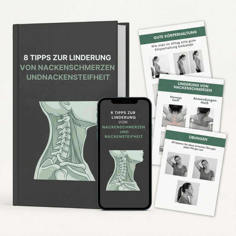 Bestellen Sie jetzt und erhalten Sie unseren Ratgeber "8 Tipps gegen Nackenschmerzen und -verspannungen“ GRATIS! Enthält von Physiotherapeuten empfohlene Übungen und praktische Tipps zur natürlichen Schmerzlinderung. Sofort nach dem Kauf zum Download verfügbar