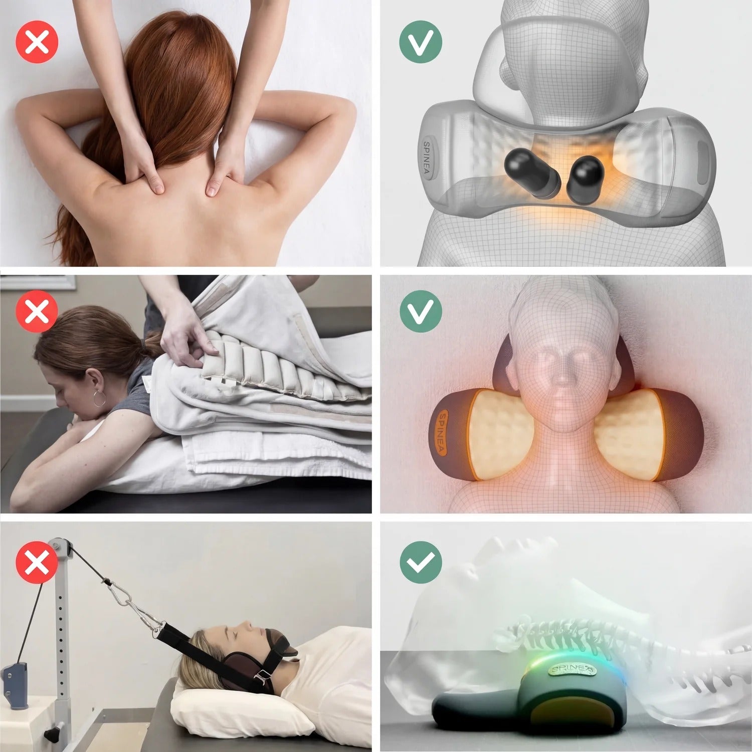 NackenCare® Massagegerät von Spinea mit anderen Lösungen (wie Massagegeräten, Physiotherapie, anderen Geräten) und Schmerzmitteln.